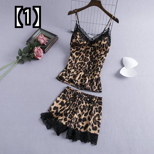レディース パジャマ レディース アイス シルク スリング ショーツ ツーピース スーツ チェスト パッド付き ヒョウ柄 ホーム スーツ