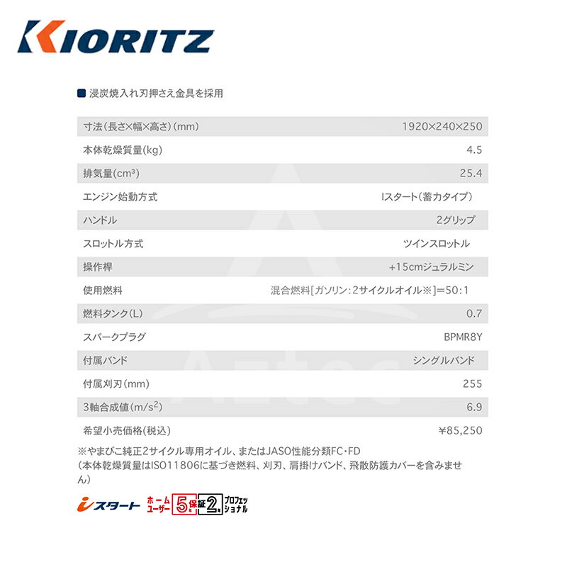【ジュラルミン操作桿 SRE2730P-GHT/15】●浸炭焼入れ刃押さえ金具を採用・寸法(長さ×幅×高さ)(mm)1920×240×250・本体乾燥質量(kg) 4.5・排気量(cm3) 25.4・エンジン始動方式 Iスタート(蓄力タイプ)・2グリップ・スロットル方式 ツインスロットル・操作桿 +15cmジュラルミン・使用燃料 混合燃料[ガソリン:2サイクルオイル※]=50:1・燃料タンク(L) 0.7・スパークプラグ BPMR8Y・付属バンド シングルバンド・付属刈刃(mm) 255・3軸合成値(m/s2) 6.9※送料無料(沖縄・離島を除く)※季節商品のため、在庫切れ及びお届けまでお時間いただく場合がございます。