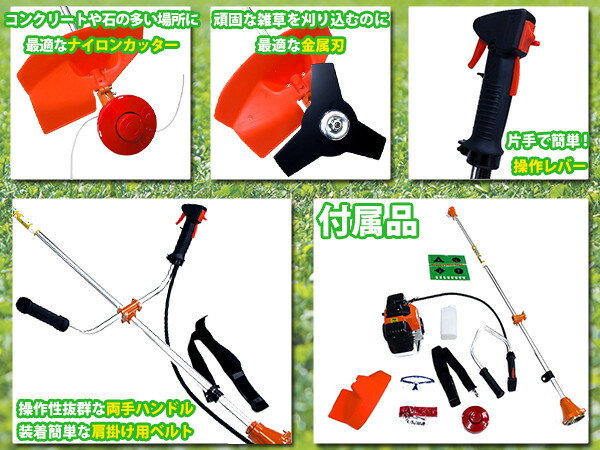 径の小さい木も刈れるので幅広く使用可能!柔らかい草やフェンスなどで使用可能なナイロンカッター付き!【注意事項】 必ずゴーグル(保護メガネ)を着用の上、使用してください。