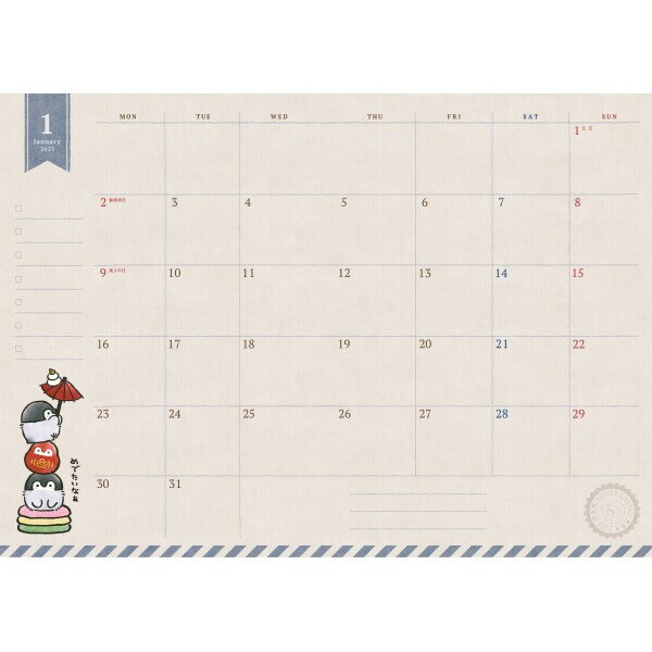 中紙にも、かわいいコウペンちゃんがいっぱい!1ヶ月の予定がひと目でわかる見開きマンスリータイプ(月曜始まり)。