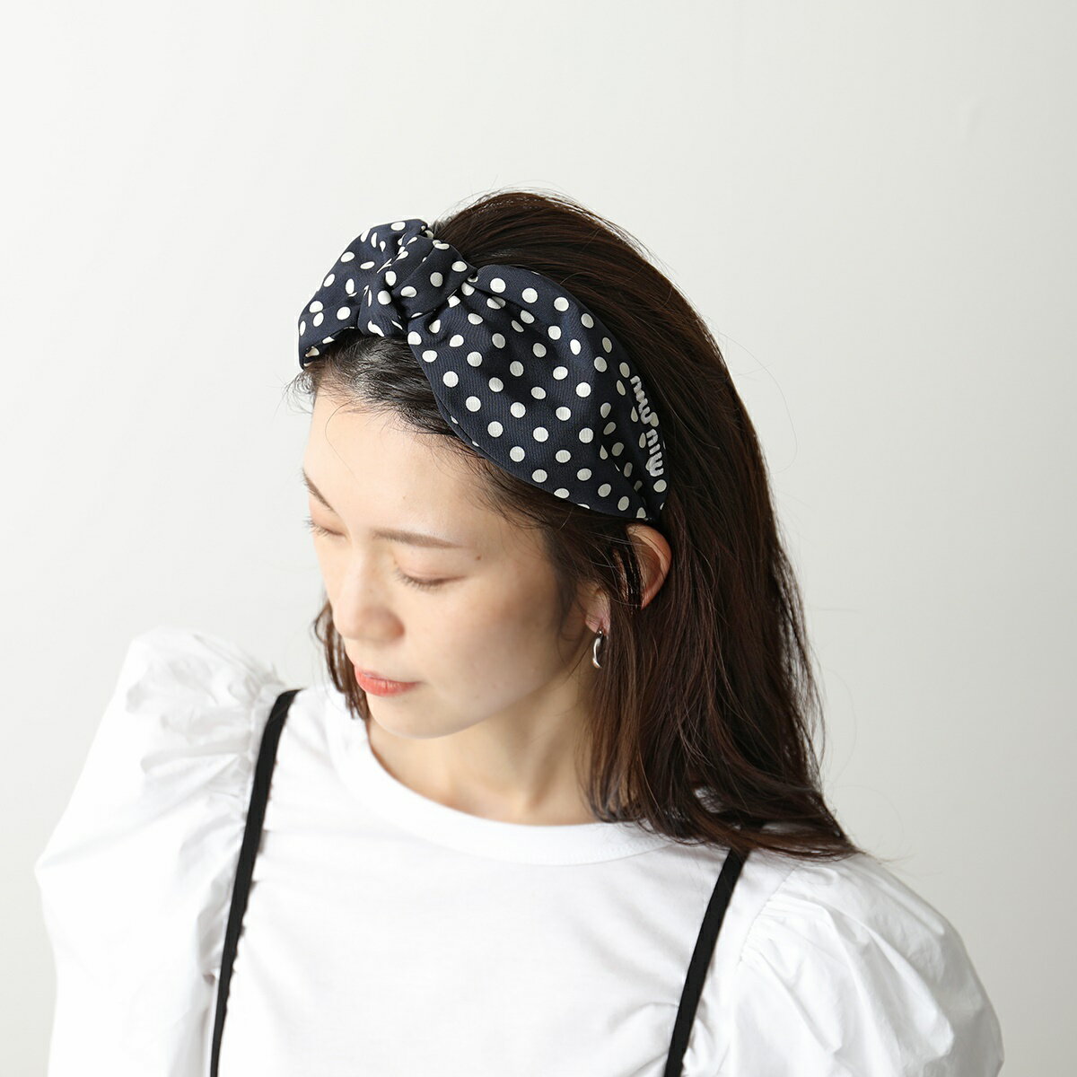 MIUMIU ミュウミュウ カチューシャ ヘッドバンド 5IH032 2DPC F02N0 レディース プリントファイユ ドット柄 リボン ロゴ刺繍 カラー2色