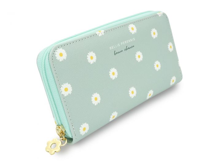 総柄デイジー ラウンド 長札 財布 グリーン 長財布 かわいい おしゃれ 大人可愛い レディース 女の子 中学生 女子 小学生 高校生 財布
