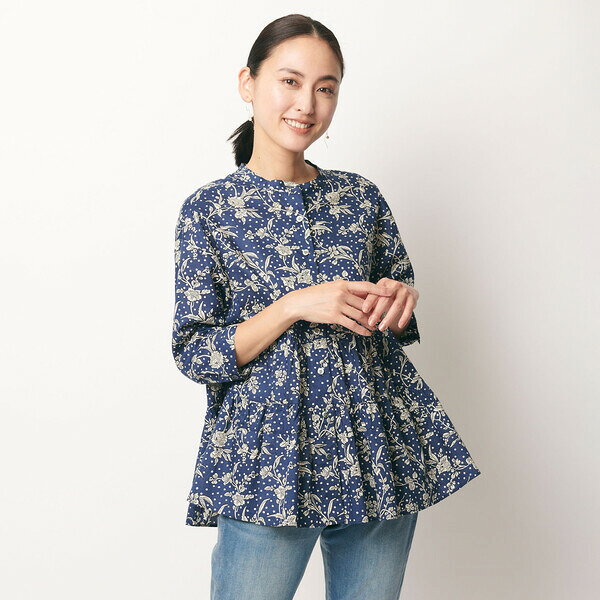 J.Sloane (ジェイスローアン) リバティプリント フリルカラーシャツ