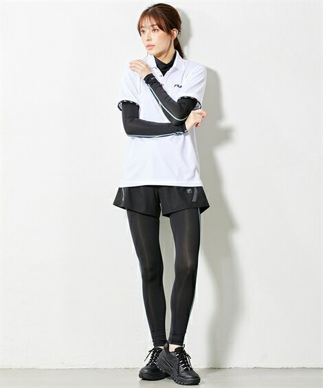 タイツ インナー トールサイズ レディース FILA 接触冷感 ロング 吸水速乾 UVカット 夏 黒×ブルー/黒×黒 3L/4L/5L ニッセン nissen