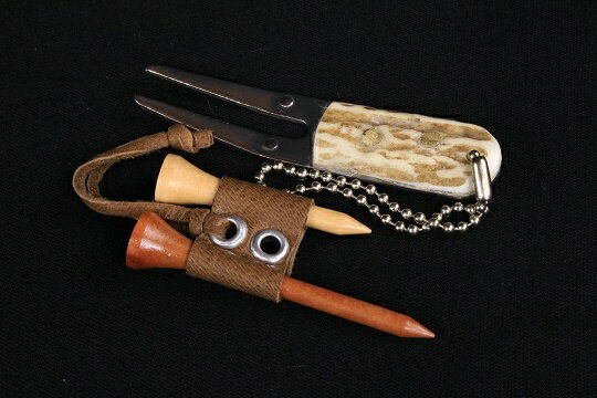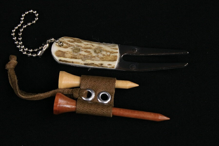 【ふるさと納税】1031.鹿角2本爪グリーンフォーク&鹿革ティーホルダー ゴルフ用品 12,000円